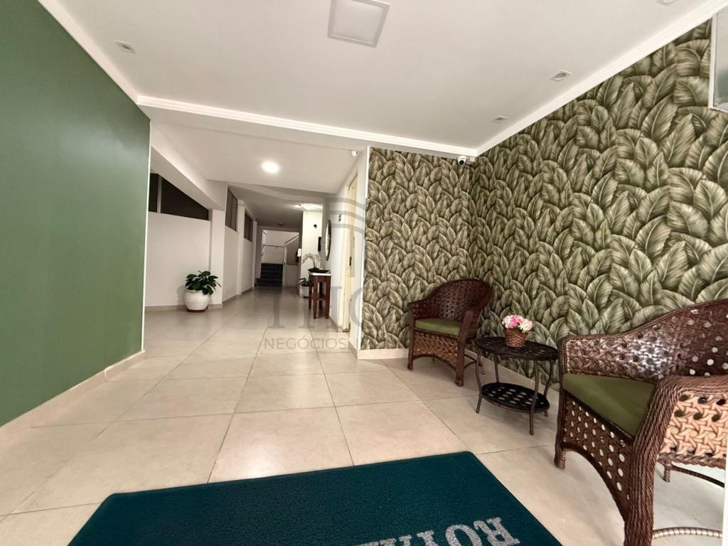 Sala e cozinha já equipadas, banheiro social e uma vaga para carro.