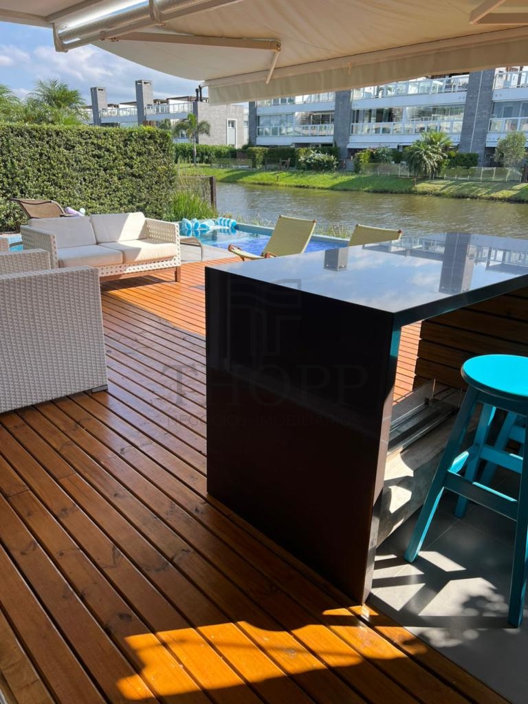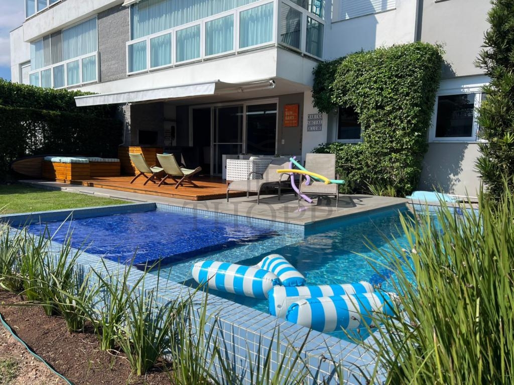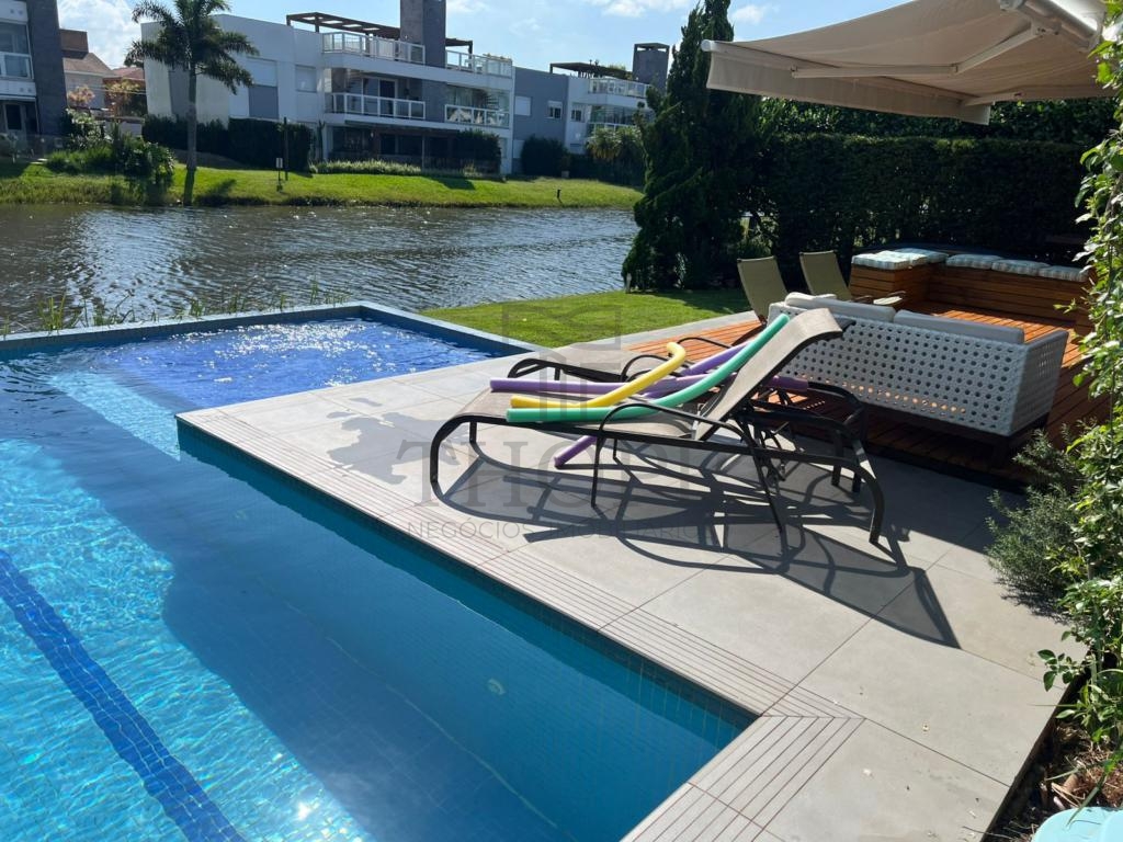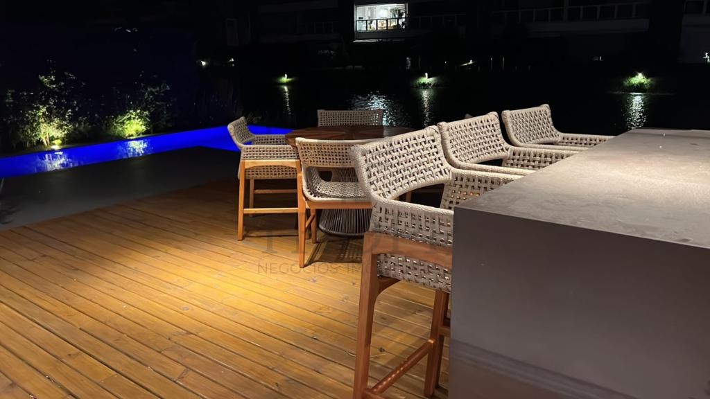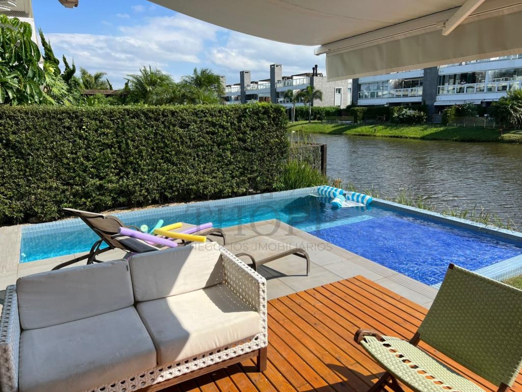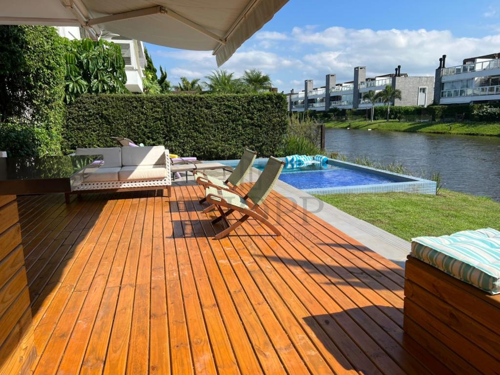 Nos fundos, você desfruta de uma piscina privativa e uma vista tranquila para o lago — um cenário perfeito para relaxar.
