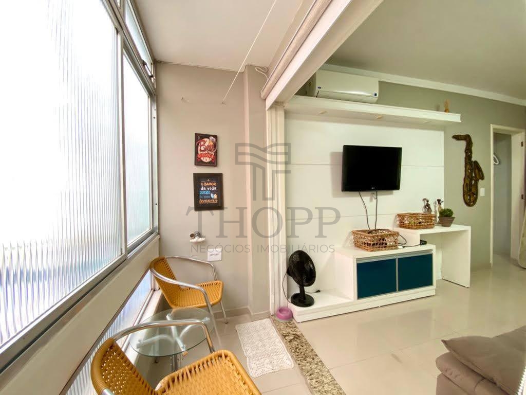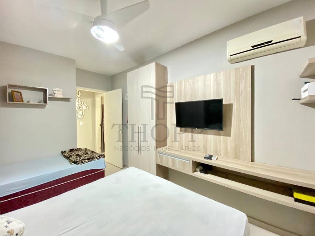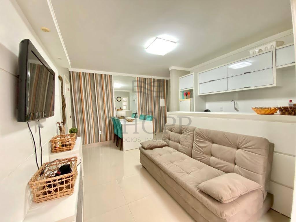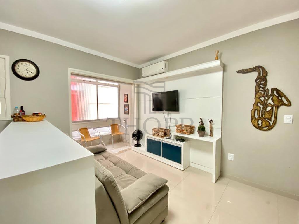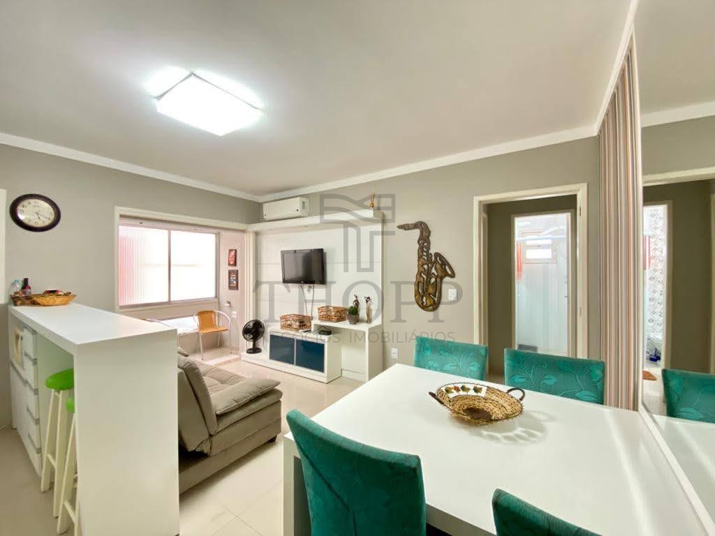 Apartamento para Temporada – 1 Dormitório Mobiliado e Decorado. Composto por 01 dormitório com cama de casal + cama de solteiro, sala de estar com sofá e TV, sala de jantar integrada, cozinha completa com balcão americano e banheiro social.