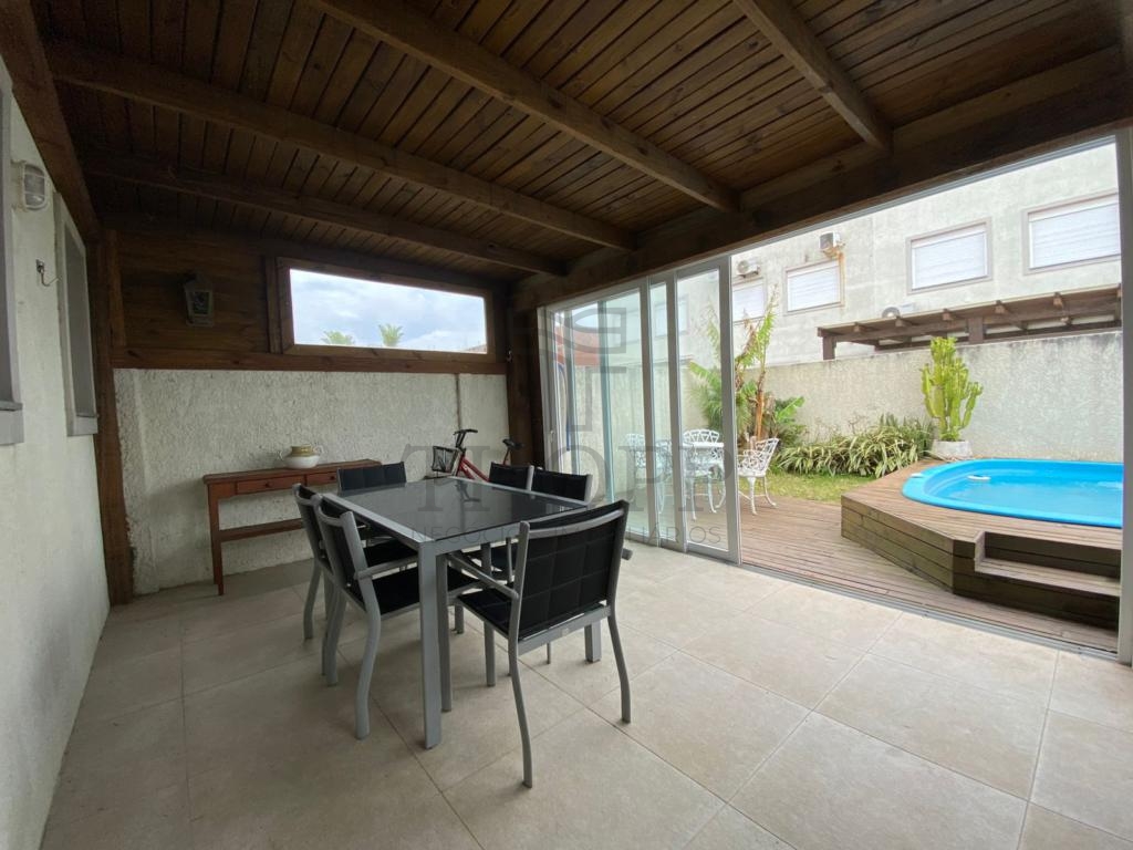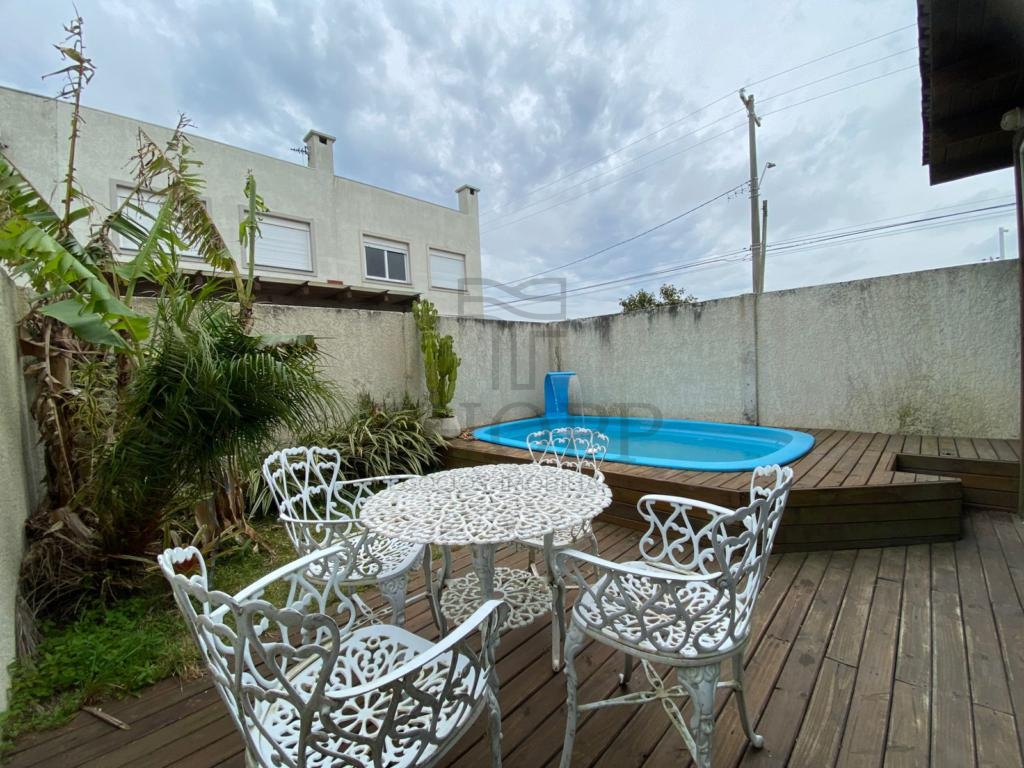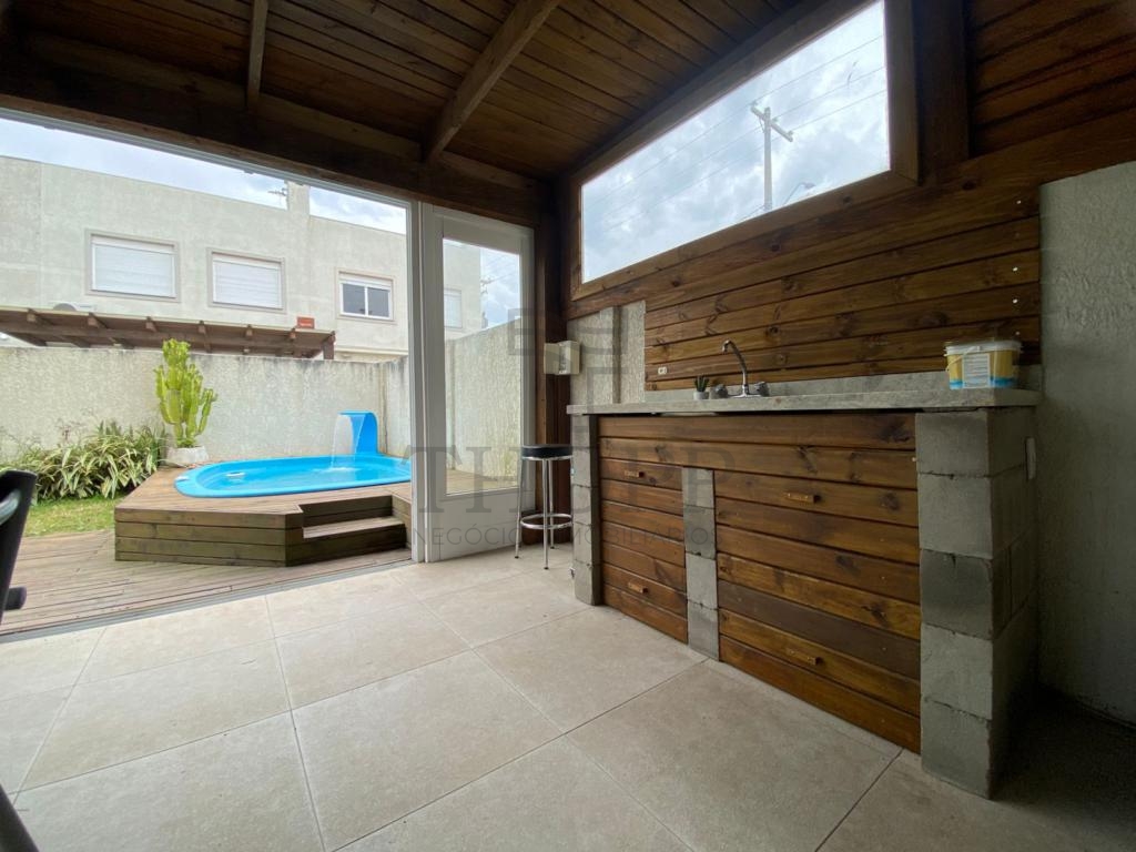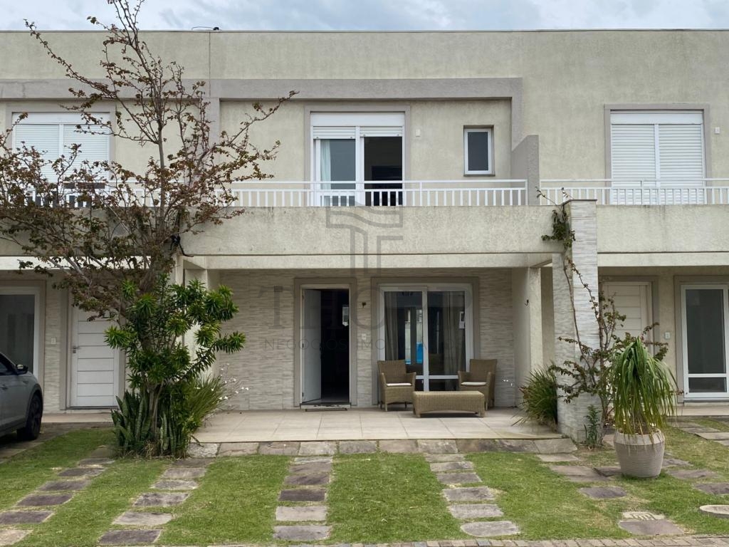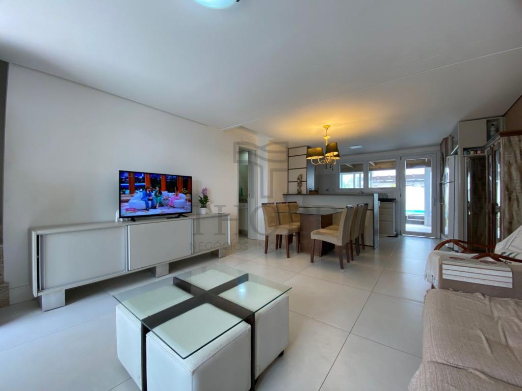 Sobrado mobiliado em condomínio fechado, ideal para suas férias. São 3 quartos (1 suíte com varanda), salas integradas, cozinha completa, área de serviço equipada, pátio privativo e piscina no imóvel.