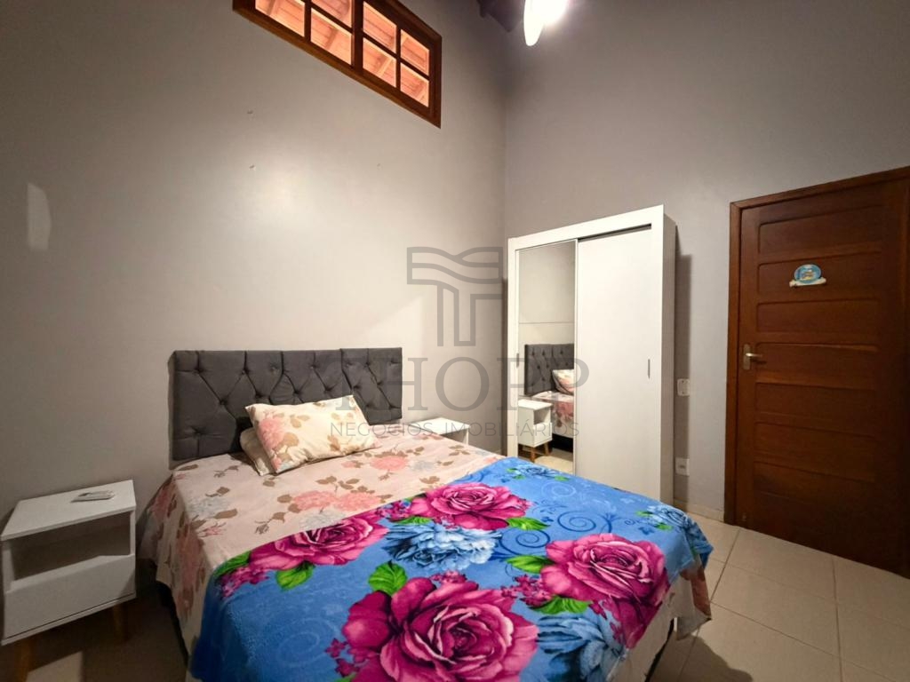 Com 4 quartos amplos, a casa acomoda confortavelmente toda a família. A sala é arejada, com TV e Wi-Fi, a cozinha é completa com todos os utensílios, e a garagem coberta comporta dois carros.